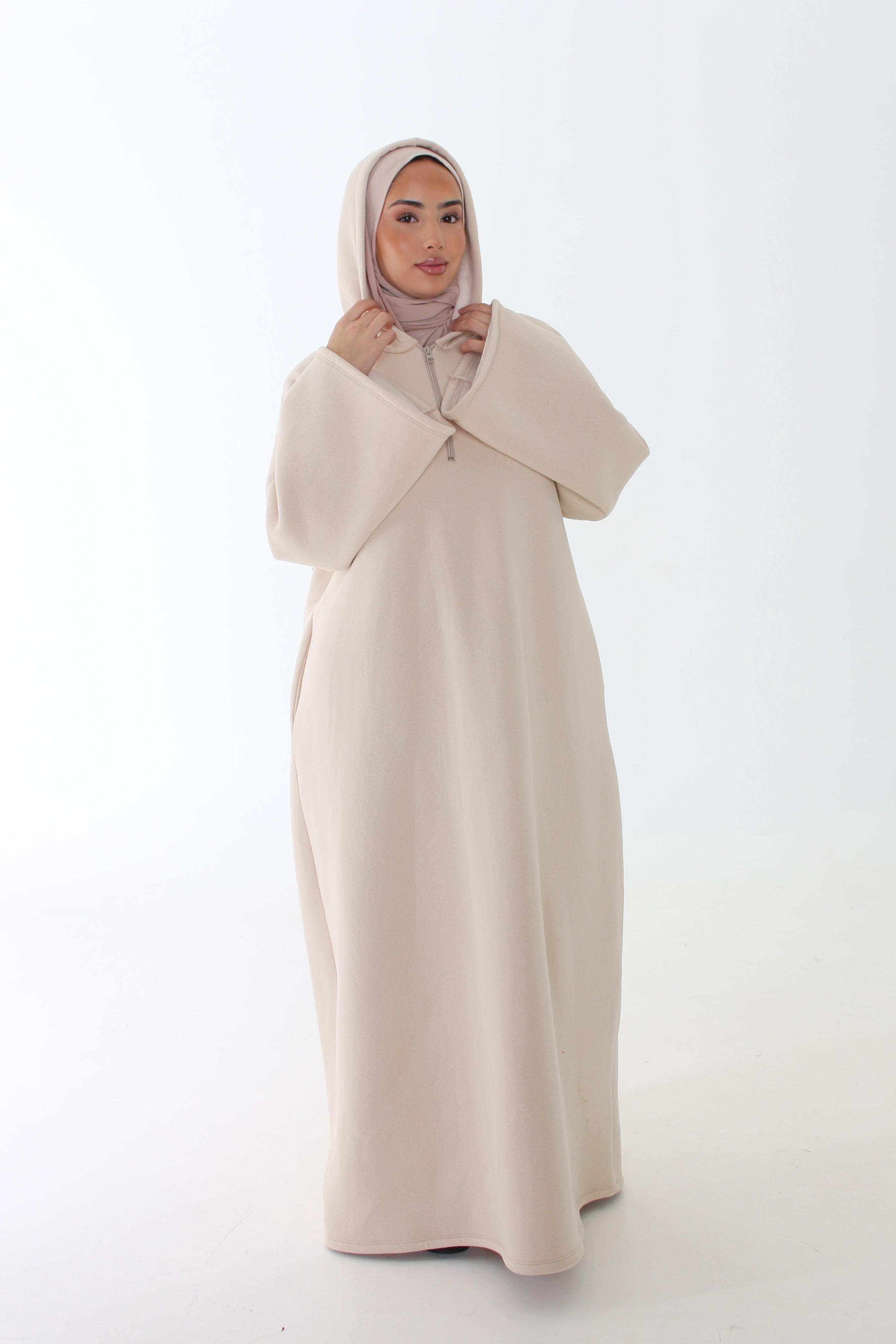 De Abaya Nona is jouw perfecte go-to voor comfort met een luxe uitstraling. Gemaakt van een súper zachte, dikke stof die je heerlijk warm houdt tijdens koudere dagen. De losse fit en brede mouwen zorgen voor een moeiteloze, elegante look met een modern vibe.