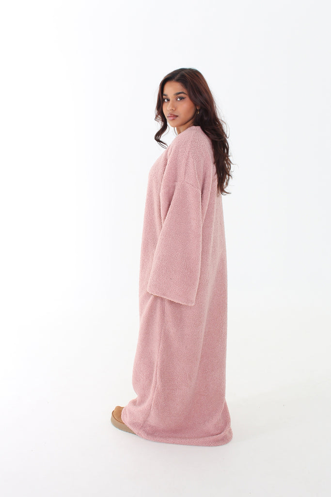 Onze Teddy Abaya is dé musthave voor de koudere dagen. De zachte, teddy-achtige stof geeft een warme en luxe uitstraling, perfect voor een stijlvolle maar comfortabele look.