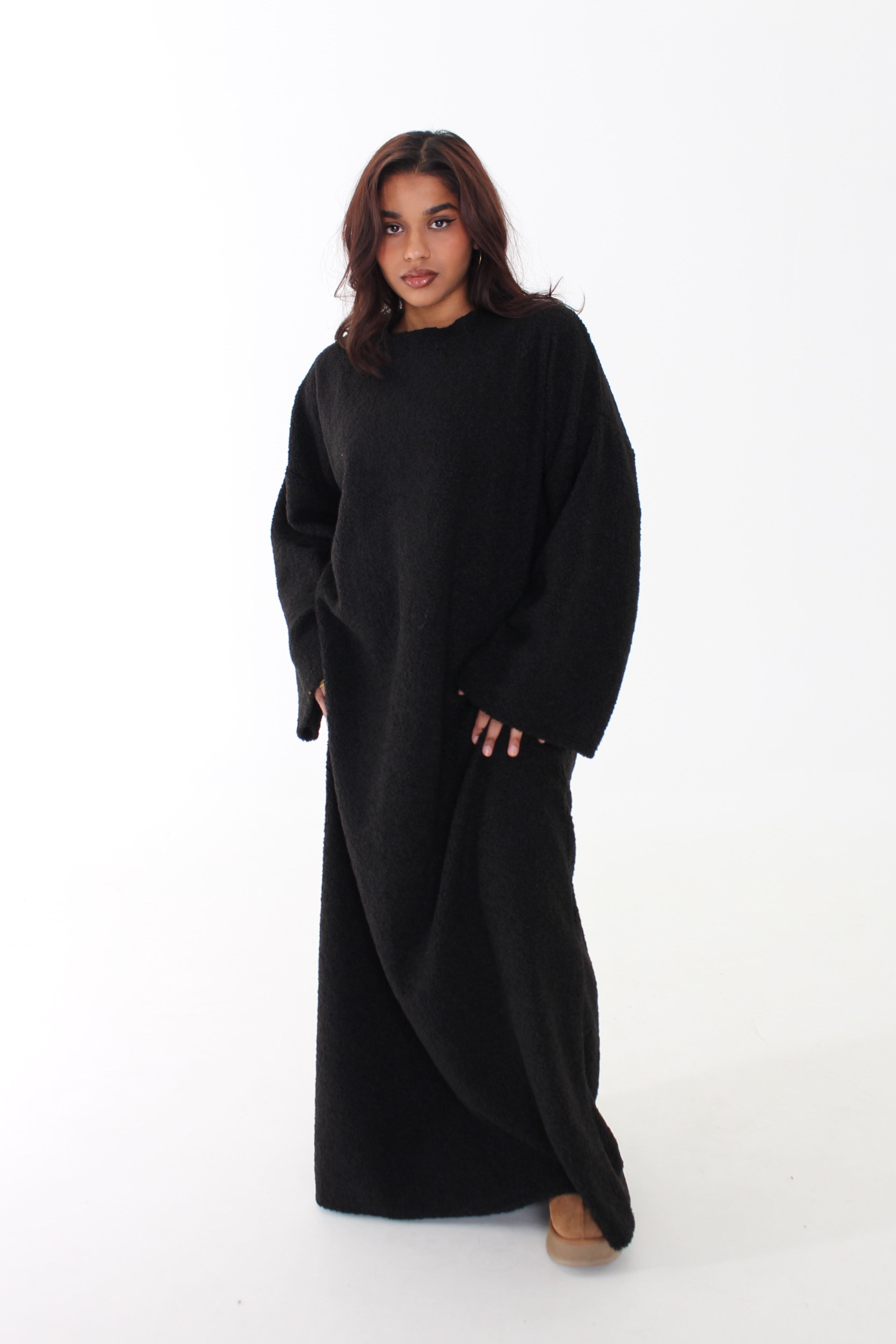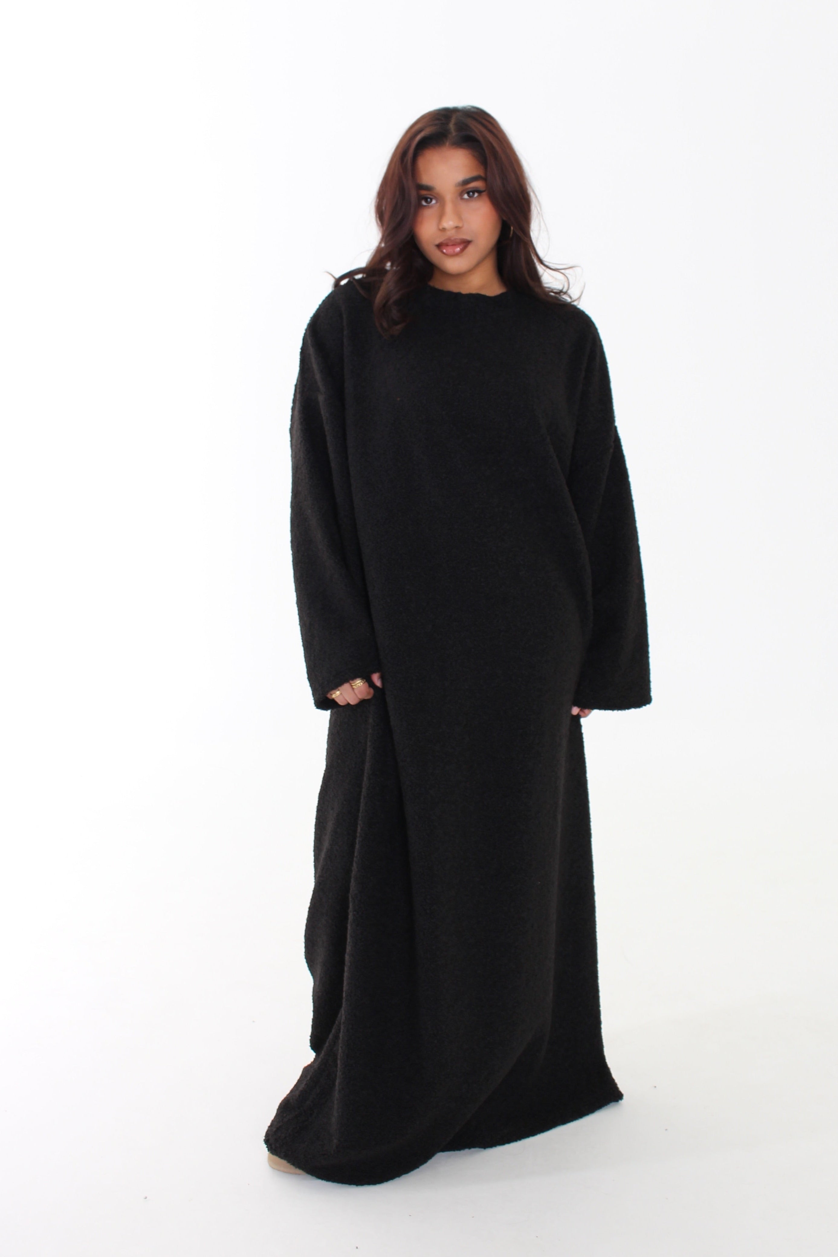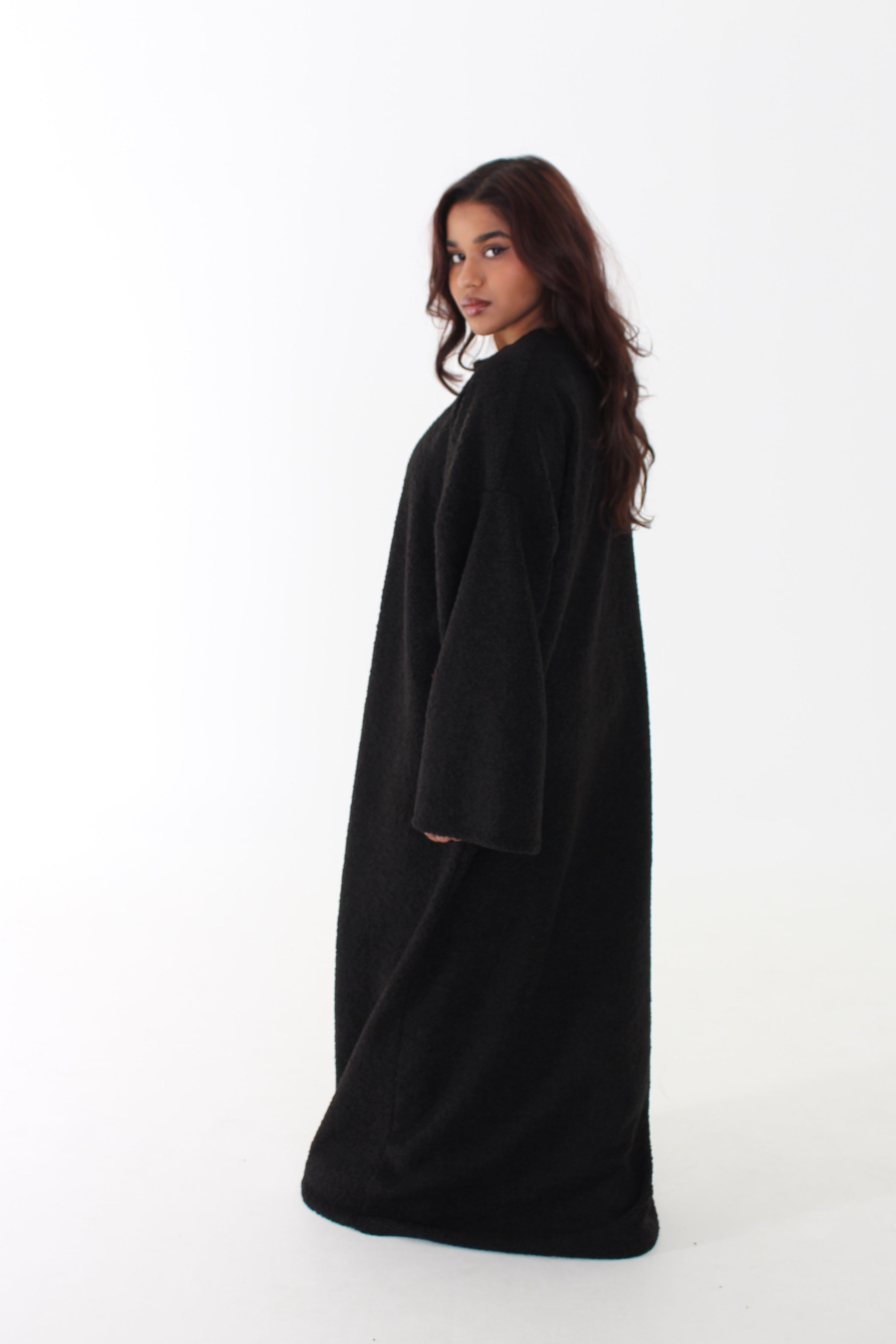 Onze Teddy Abaya is dé musthave voor de koudere dagen. De zachte, teddy-achtige stof geeft een warme en luxe uitstraling, perfect voor een stijlvolle maar comfortabele look.