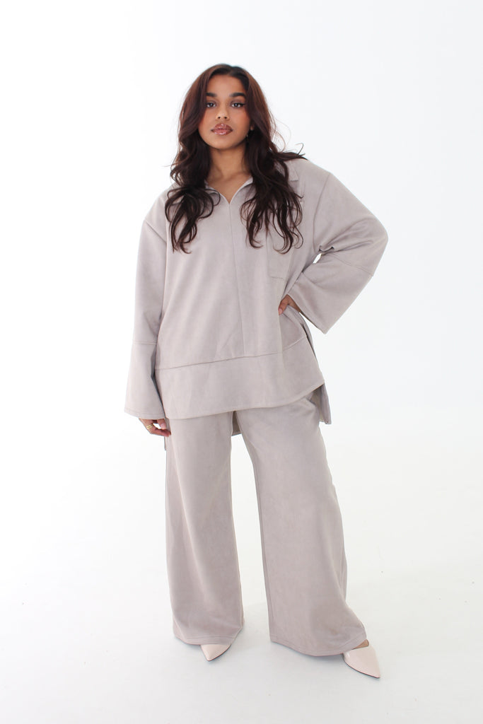 Co-ord Donna Beige is een prachtige velvet set voor de herfst en winter, die je heerlijk warm houdt tijdens koude dagen. De lengte is perfect voor petite girlies! Leuk te stylen met hakken, maar ook super met sneakers of UGGs.
