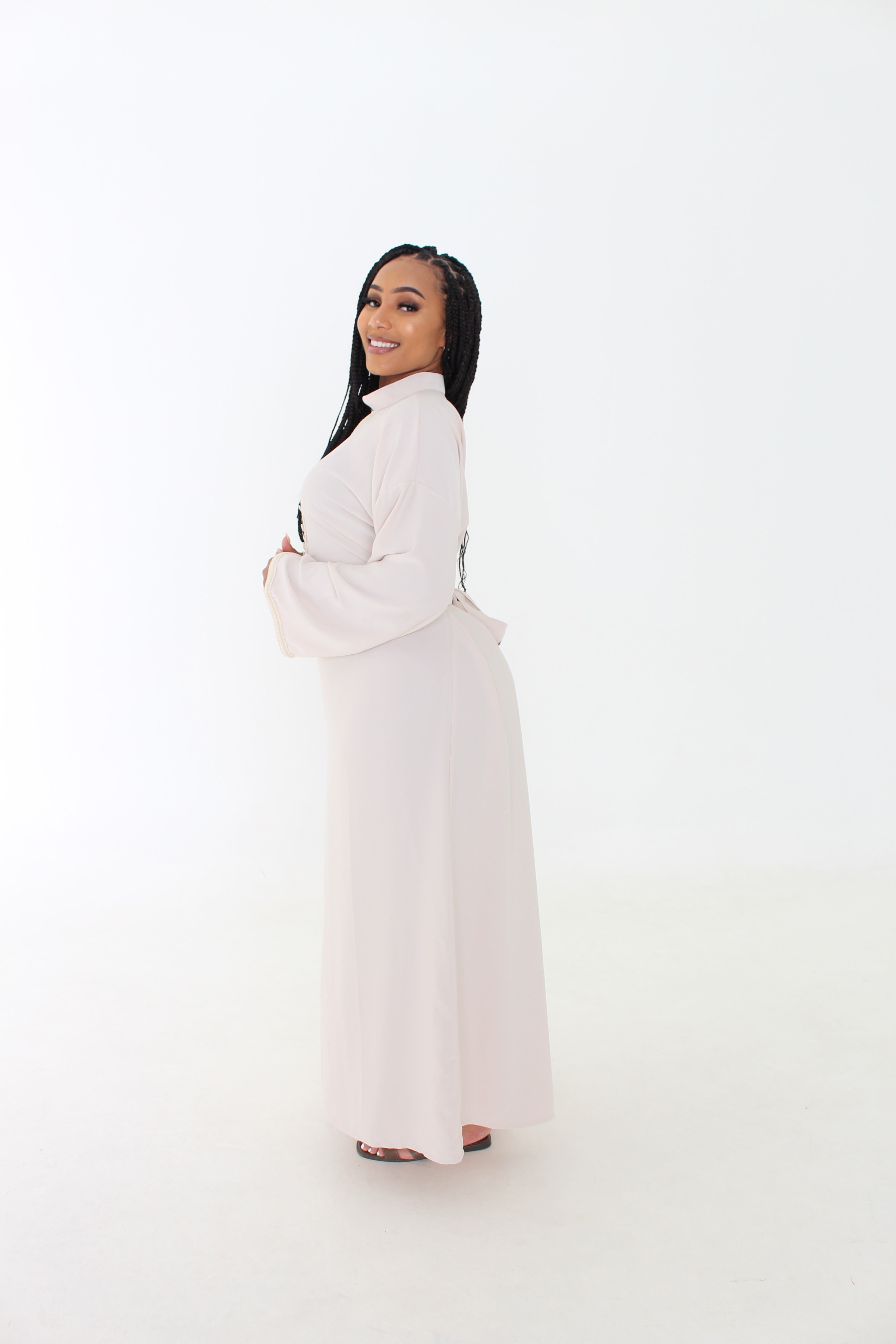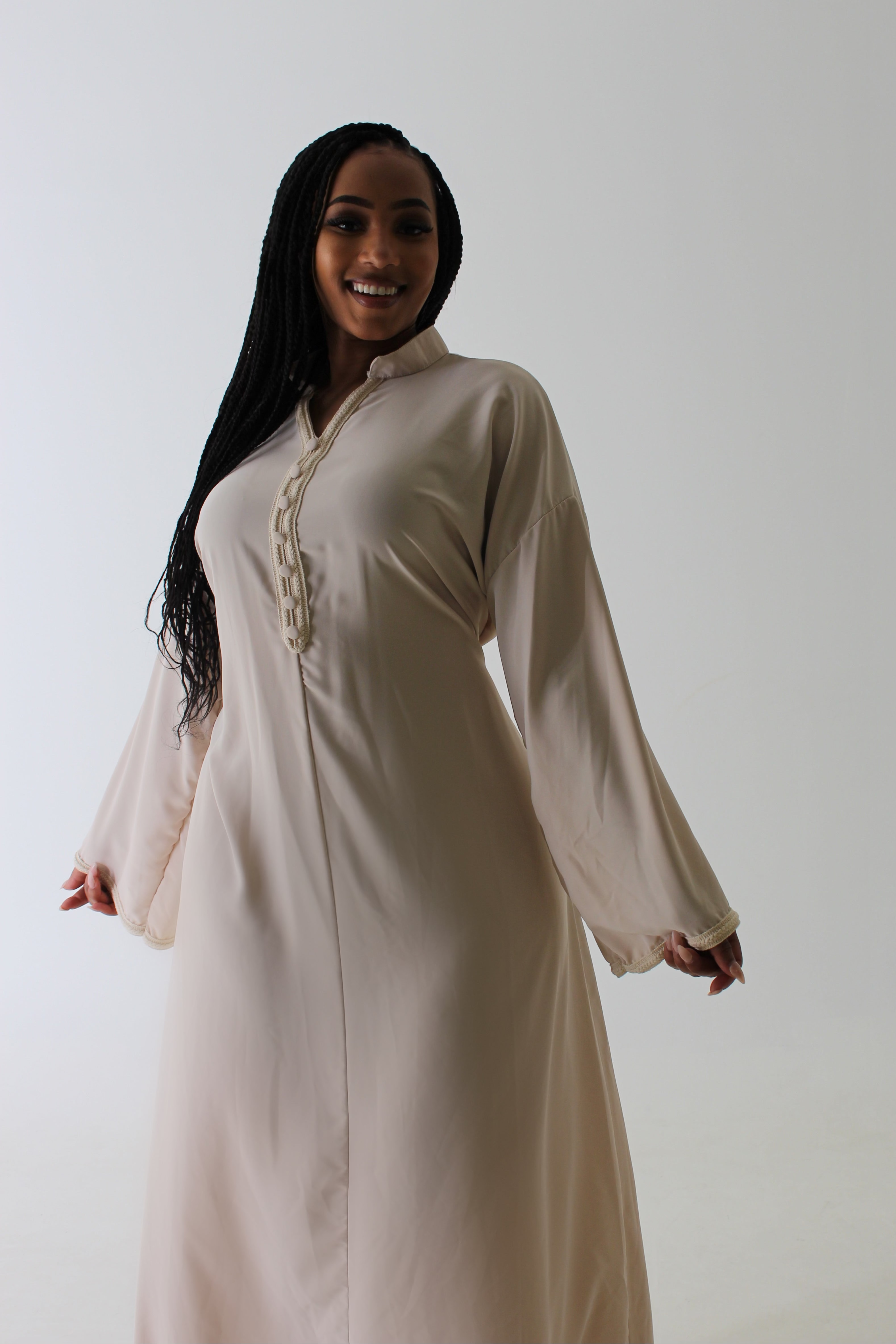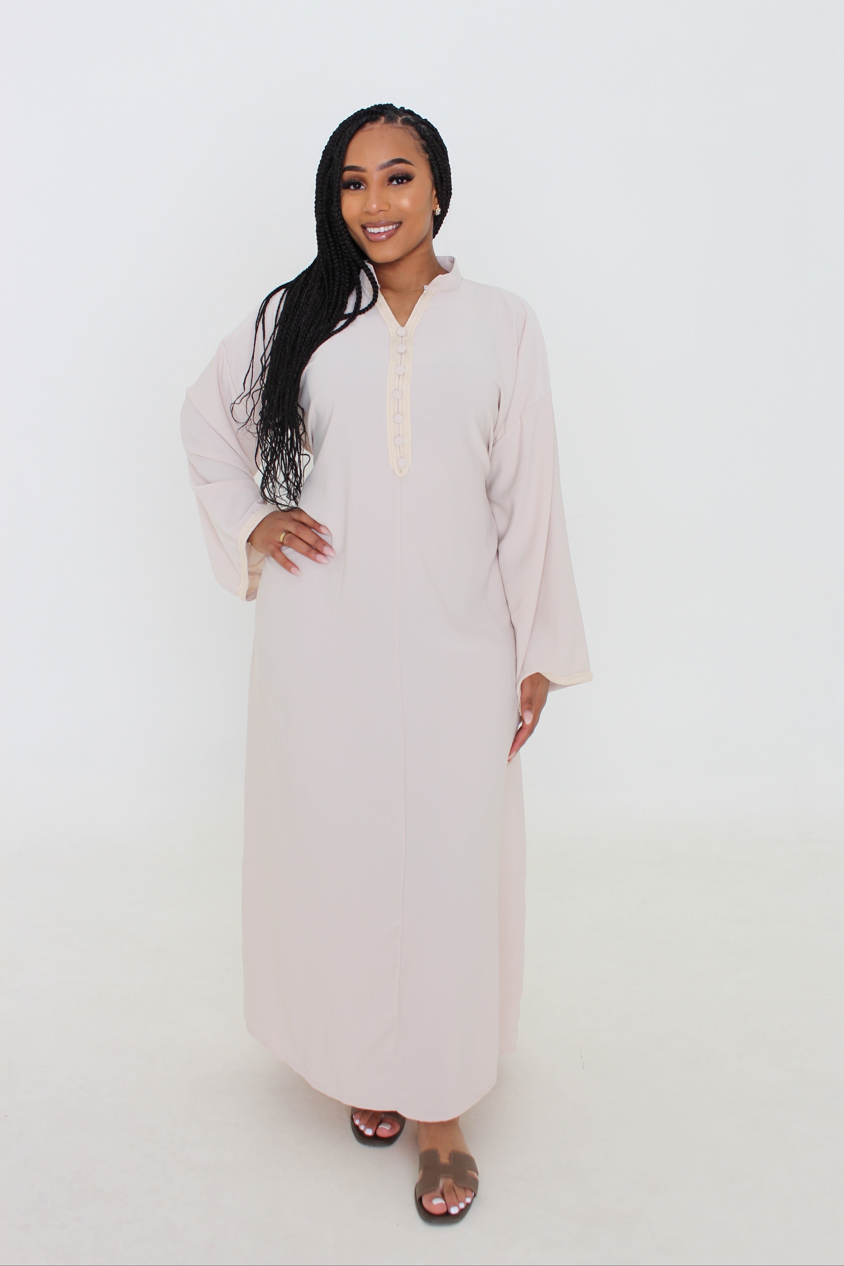 De Yasmin abaya is gemaakt van een soepele, comfortabele stof met een verfijnde look. De losvallende pasvorm zorgt voor een mooie flow, terwijl de subtiele knoopdetails aan de hals een vrouwelijke en unieke touch geven.