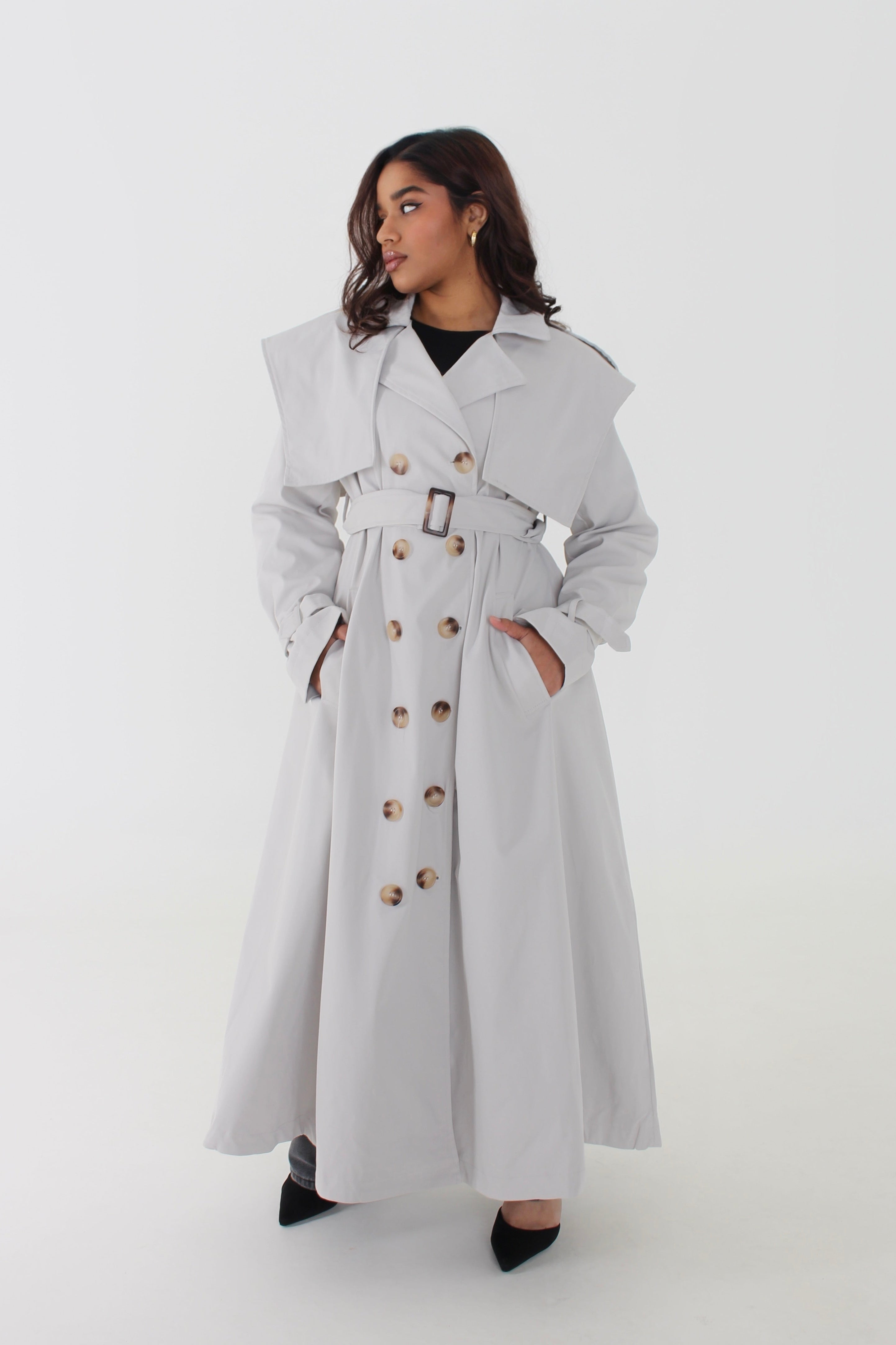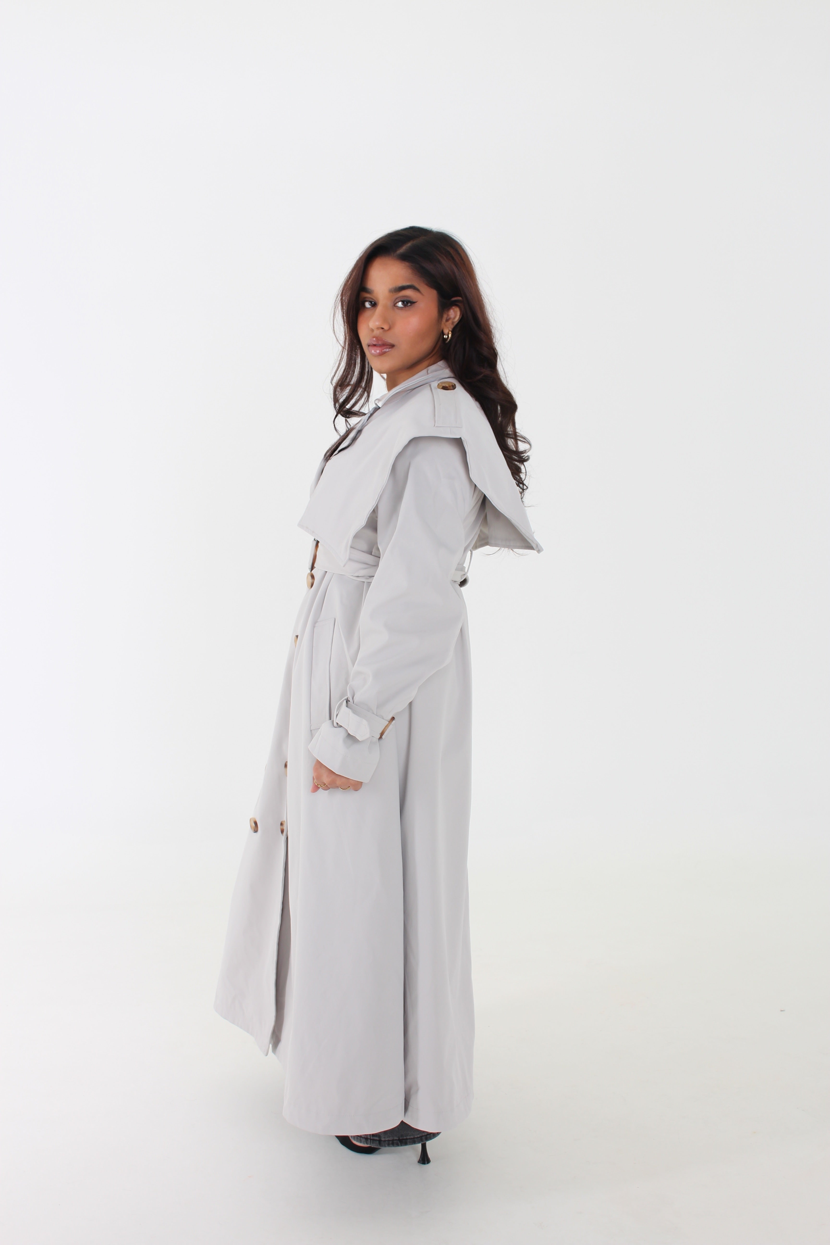 Elegantie met een Parisian touch. Deze trenchcoat is een veelzijdige essential die je zowel als stijlvolle jas of als jurk kunt dragen. De zachte, vloeiende pasvorm creëert een vrouwelijke silhouet, terwijl de clean look zorgt voor een tijdloze uitstraling.