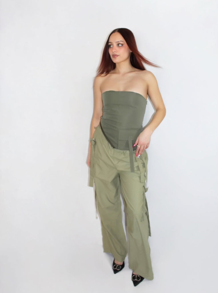 Elevate your style and functionality with Nova Khaki Parachute Pants. These pants combine the best of utility and fashion, featuring a durable cargo/parachute design with a rugged touch. Size up for an oversized, effortlessly cool look.