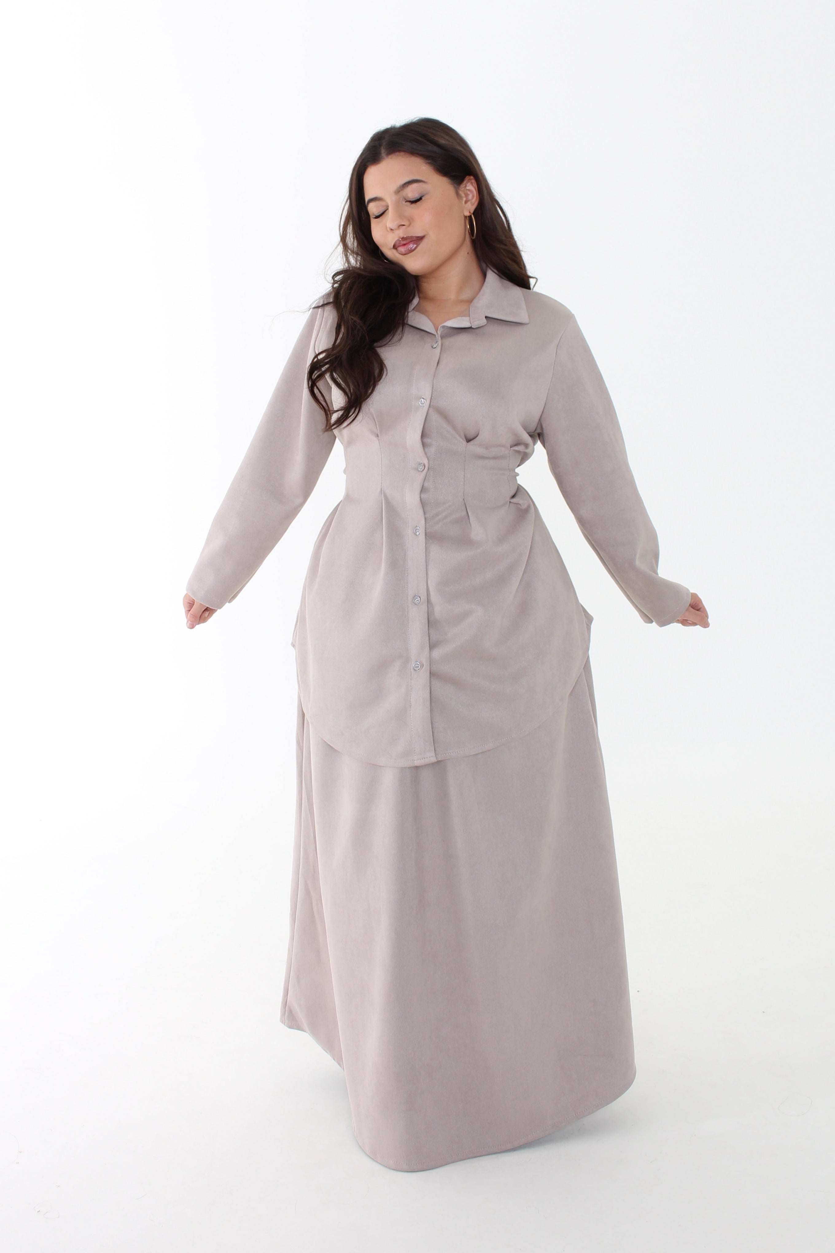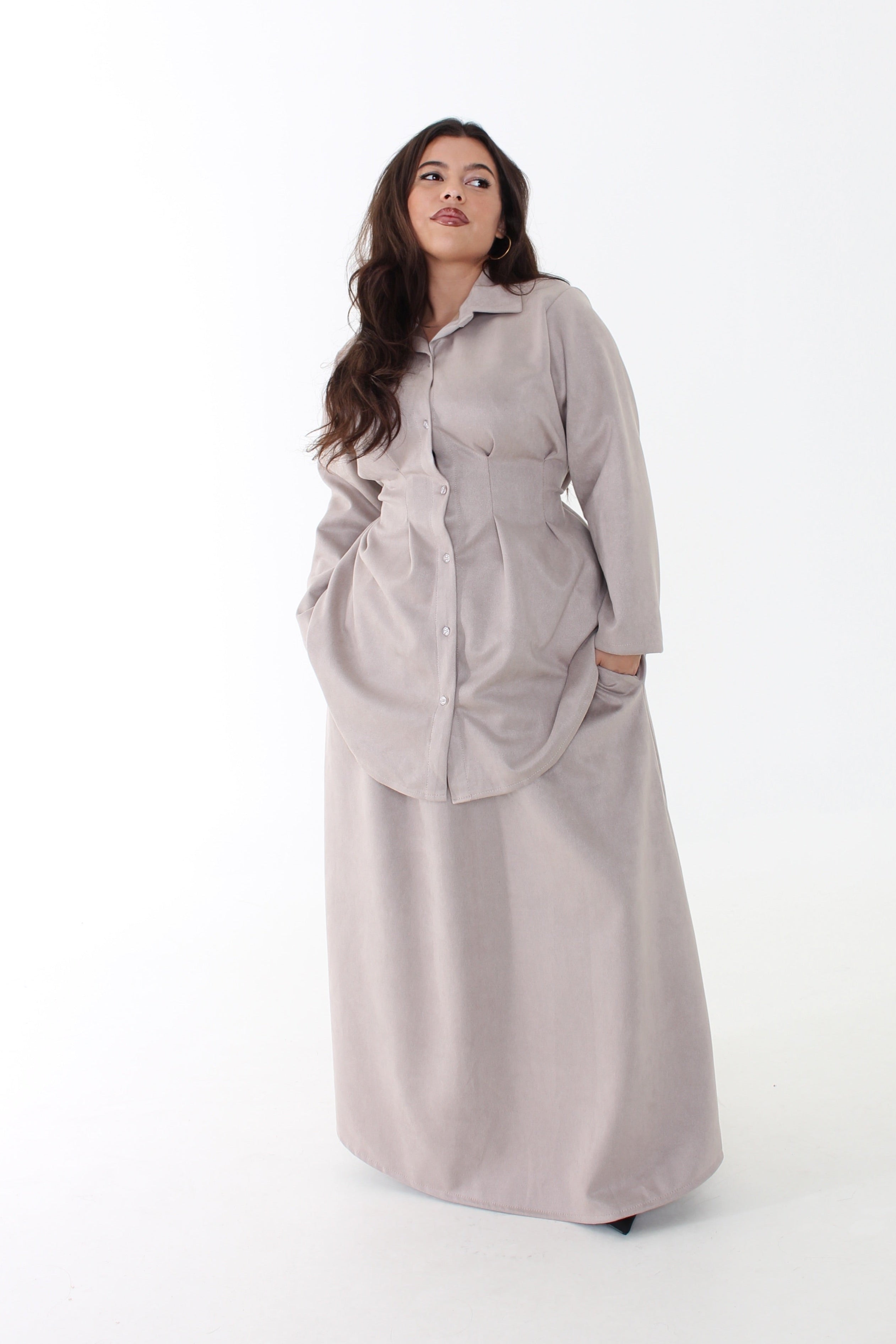 Onze Perfect Fit Skirt Set is een tijdloze essential voor je garderobe. De set is gemaakt in een zachte suedelook die elegantie en comfort combineert. De rok valt mooi recht en geeft een stijlvolle, vrouwelijke uitstraling.